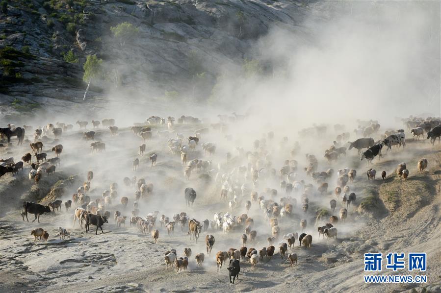 這是牧道上轉(zhuǎn)場的牲畜(6月6日攝)。新華社記者丁磊攝