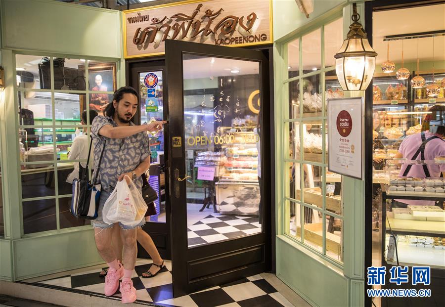 9月1日,顧客在泰國曼谷著名的“九姐妹甜點”店挑選傳統(tǒng)泰式甜點。新華社記者 張可任 攝