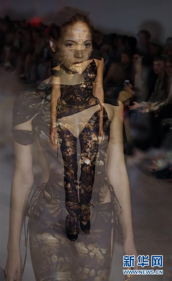 9月17日,在英國(guó)倫敦,模特在2020倫敦春夏時(shí)裝周上展示Charlotte Knowles品牌服飾(多重曝光)。 當(dāng)日,2020倫敦春夏時(shí)裝周落幕。 新華社記者 韓巖 攝