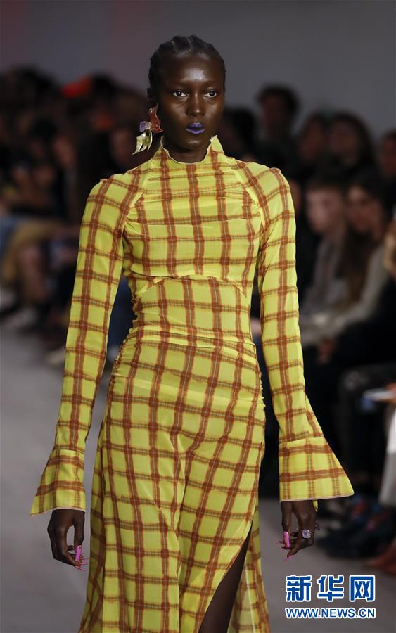 9月17日,在英國倫敦,模特在2020倫敦春夏時裝周上展示Charlotte Knowles品牌服飾。 新華社記者 韓巖 攝
