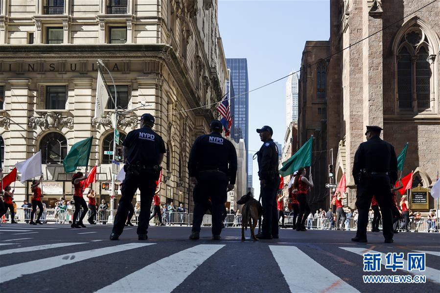 10月14日,在美國紐約曼哈頓第五大道,警察在哥倫布日游行上警戒。當天,紐約舉行哥倫布日游行,紀念意大利航海家克里斯托弗·哥倫布首次到達美洲大陸。哥倫布日游行也是美國最大的展示意大利文化傳統(tǒng)的慶?;顒?。新華社記者李木子攝