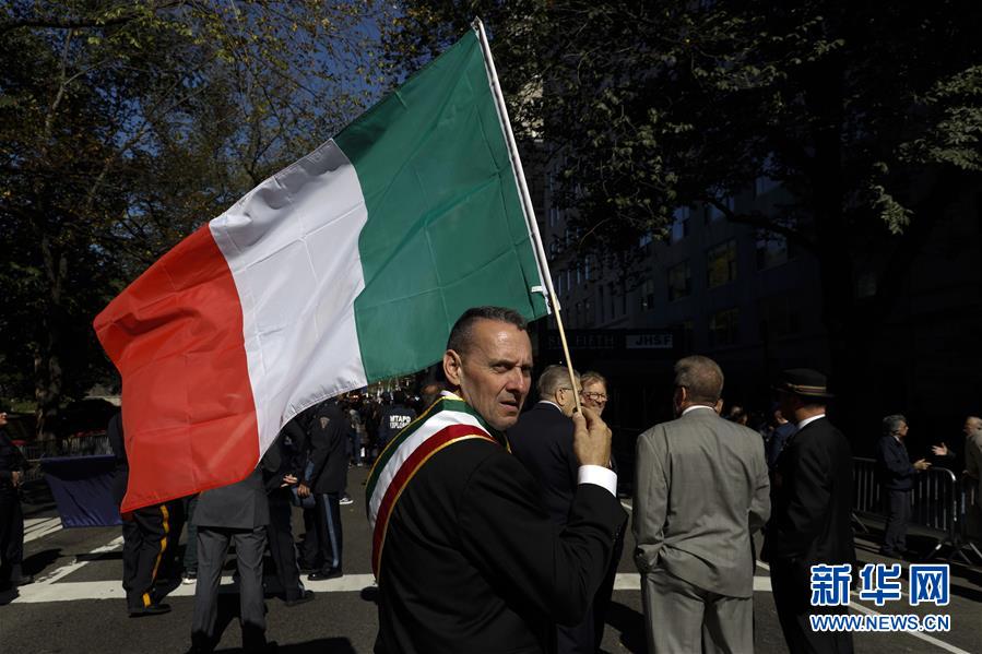10月14日,在美國紐約曼哈頓第五大道,一名男子手舉意大利國旗參加哥倫布日游行。當天,紐約舉行哥倫布日游行,紀念意大利航海家克里斯托弗·哥倫布首次到達美洲大陸。哥倫布日游行也是美國最大的展示意大利文化傳統(tǒng)的慶?;顒?。新華社記者李木子攝
