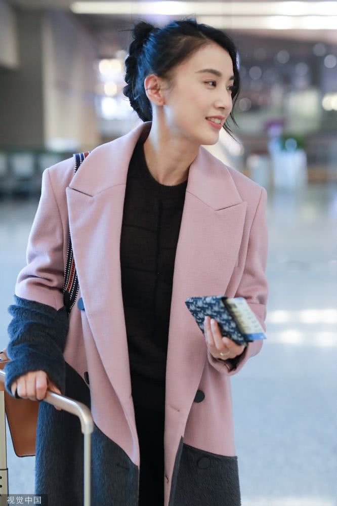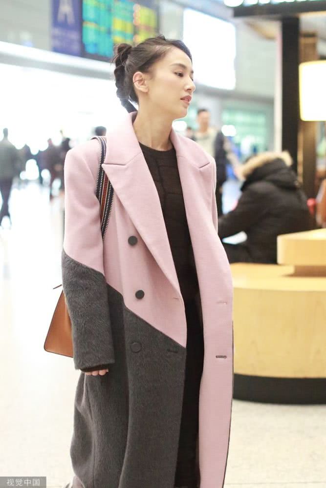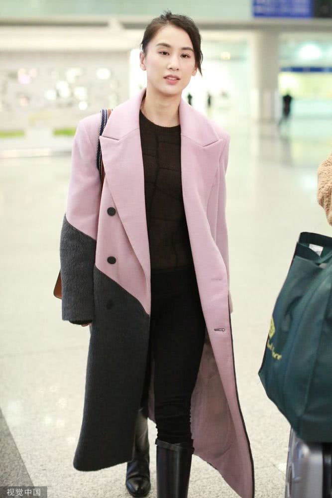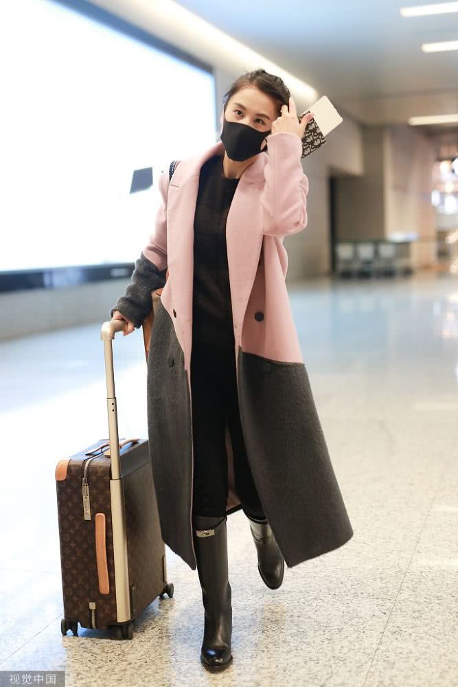 她穿大衣皮靴推行李箱滿滿商務范,扎小辮子五官清麗氣質(zhì)優(yōu)雅。