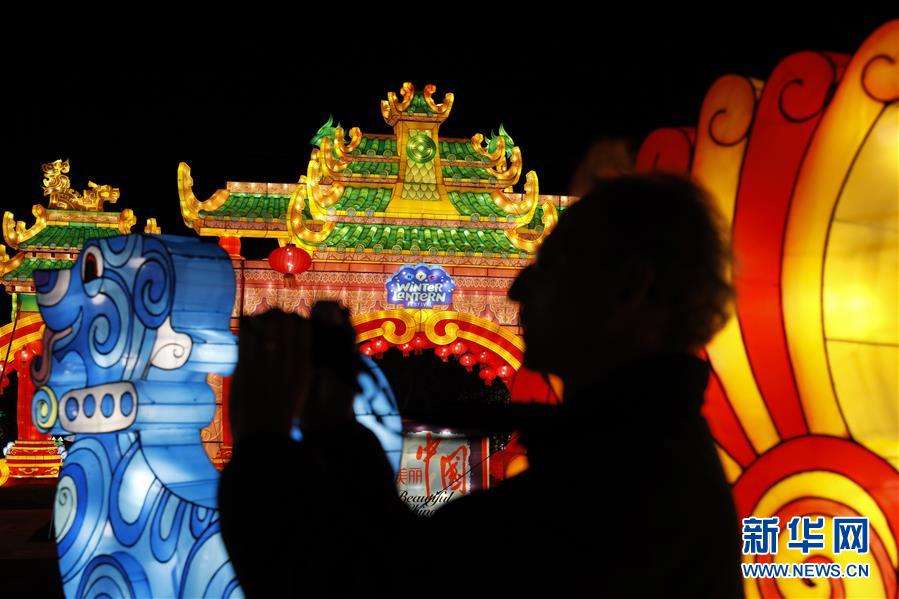 11月20日,在美國紐約斯塔滕島,游客在第二屆紐約花燈游園會上賞燈。當(dāng)日,第二屆紐約花燈游園會在美國紐約斯塔滕島開幕,50余組各類花燈照亮夜空,吸引觀眾前來賞燈游玩。新華社記者李木子攝