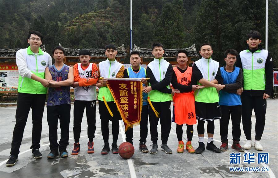 12月26日,澳門青年藝能志愿工作會(huì)的義教老師們和烏英苗寨的青年們在籃球比賽前合影留念。 新華社記者 王諾 攝