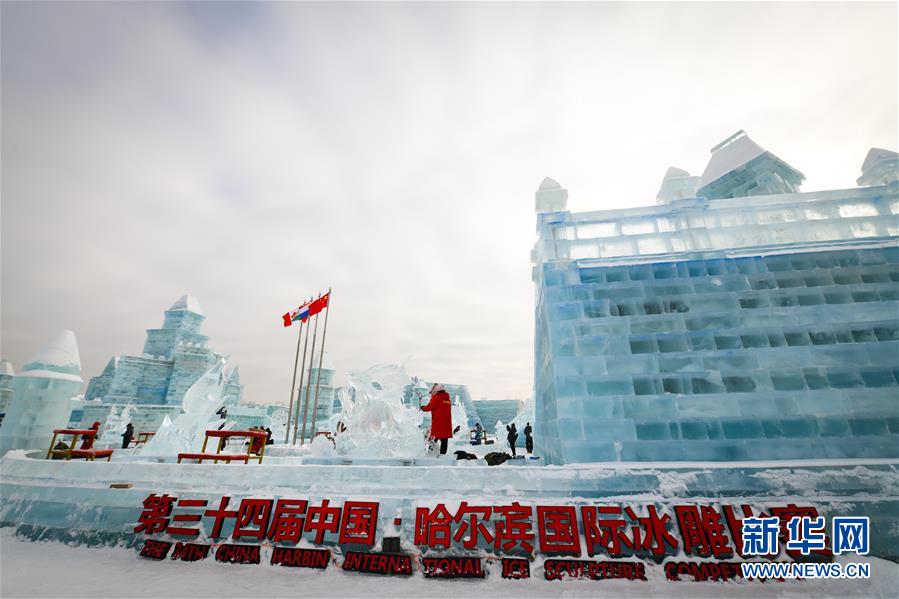 冰雕師在哈爾濱冰雪大世界內雕刻出主題各異的冰雕作品(1月8日攝)。新華社記者王松攝