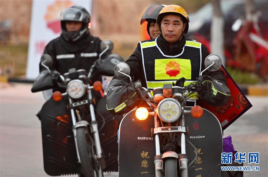 1月15日,在福建泉州,首批返鄉(xiāng)的外來務(wù)工摩托騎手騎行在路上。 新華社記者 魏培全 攝