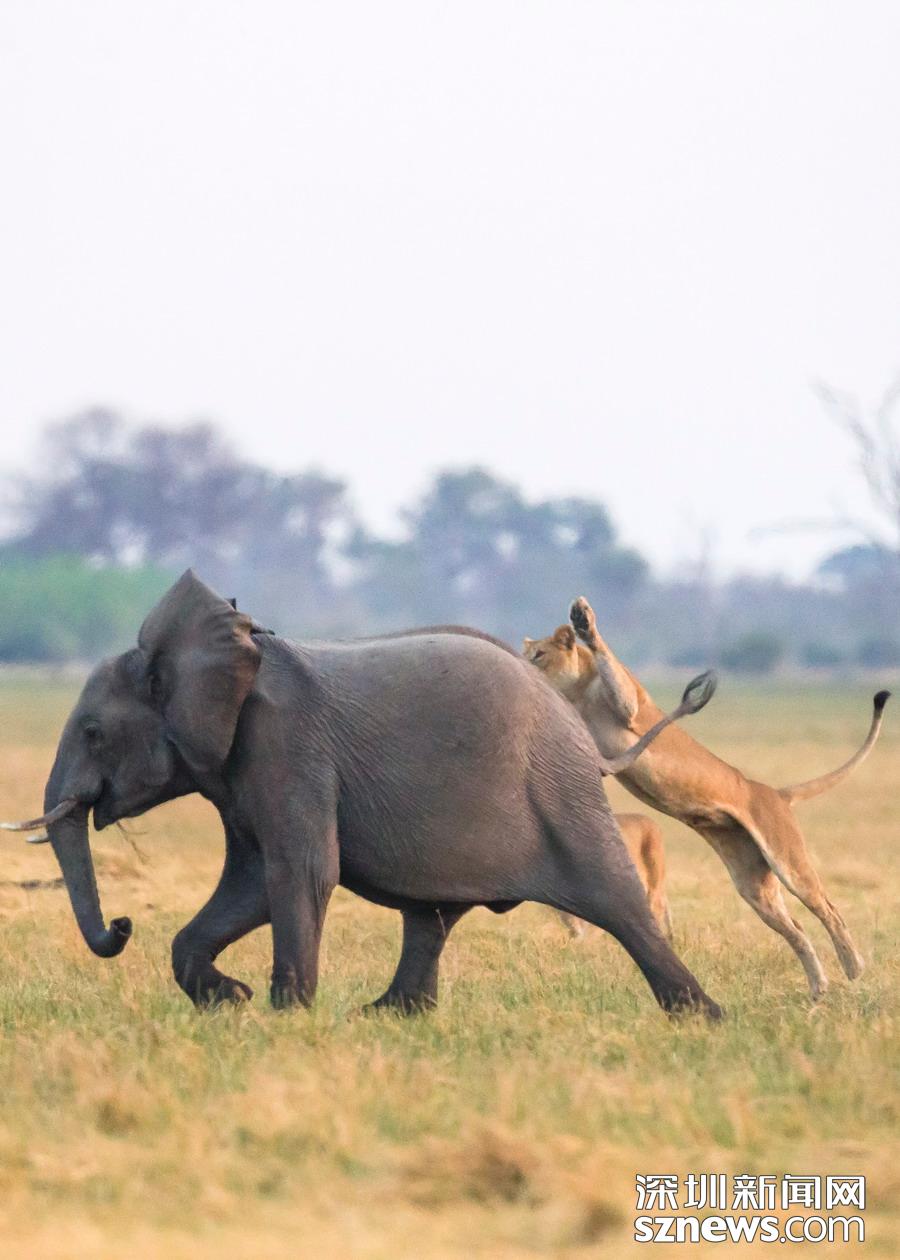 小象遭獅子獵食,象群趕到霸氣護(hù)崽。