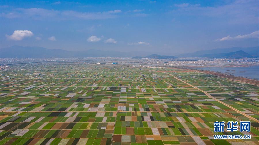 時(shí)下正值農(nóng)忙時(shí)節(jié),云南省玉溪市通海縣的農(nóng)作物長(zhǎng)勢(shì)喜人,山巒、湖水與農(nóng)田組成了一幅美麗的田園詩(shī)畫(huà)卷。