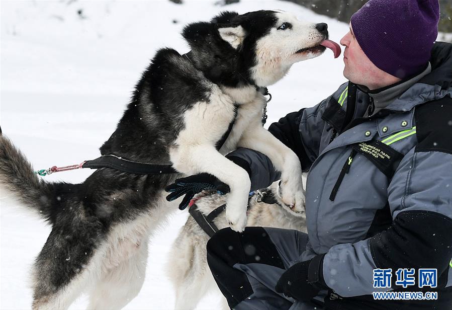 當(dāng)?shù)貢r(shí)間3月4日,俄羅斯克拉斯諾亞爾斯克,當(dāng)?shù)嘏e行10公里狗拉雪橇比賽。(圖片來源:視覺中國)