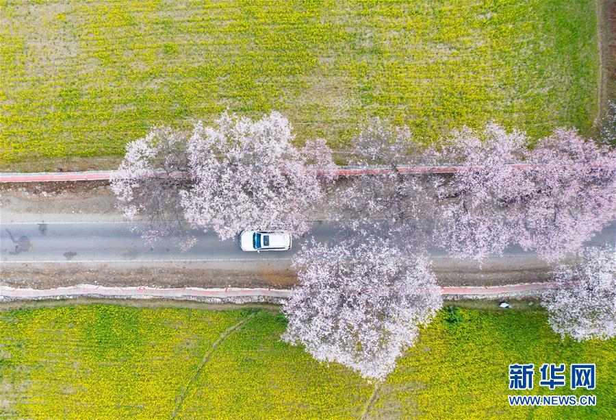 3月26日,西藏林芝境內(nèi)盛開的桃花(無(wú)人機(jī)照片)。新華社記者 孫非 攝