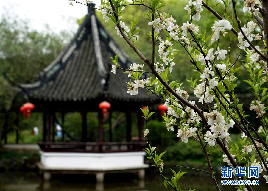 在位于上海松江的江南古典園林——醉白池,春花與古建筑相映襯(4月6日攝)。清明假期,上海的古典園林景點(diǎn)在做好防疫措施的同時(shí),有序開放運(yùn)營。在粉墻黛瓦、春色滿園中,游人們欣賞濃濃春意,感受古色古香。 新華社記者 劉穎 攝