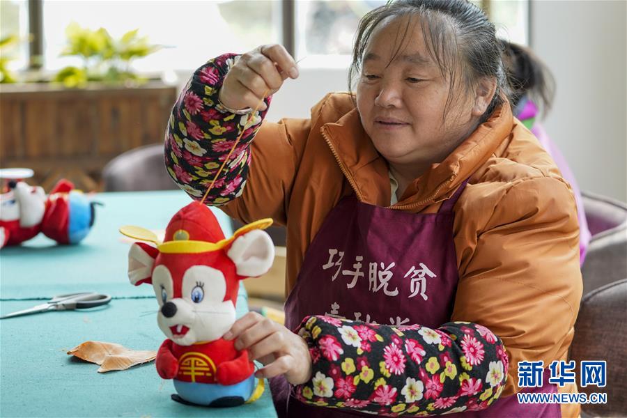 4月8日,在重慶石柱中益鄉(xiāng)巾幗扶貧工坊,一名當(dāng)?shù)貗D女在縫制文創(chuàng)產(chǎn)品。近年來,重慶市石柱土家族自治縣中益鄉(xiāng)在重慶市婦聯(lián)的幫助下,以當(dāng)?shù)胤沁z傳統(tǒng)技藝作為結(jié)合點,把扶貧與扶志、扶智相結(jié)合,通過引進外來文創(chuàng)企業(yè)對留守婦女、貧困及殘疾人群進行刺繡培訓(xùn),設(shè)立巾幗扶貧工坊等多種形式,幫助當(dāng)?shù)卮迕駥崿F(xiàn)就業(yè)增收。據(jù)介紹,巾幗扶貧工坊運行以來,為當(dāng)?shù)仃懤m(xù)開發(fā)出土家族布老虎、手提袋、餐墊繡邊、創(chuàng)意相框等一系列文創(chuàng)產(chǎn)品,幫助參加巾幗扶貧工坊的留守婦女和貧困村民實現(xiàn)月均增收近千元。新華社記者劉潺攝