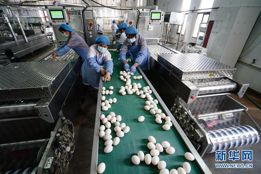 4月15日,在江蘇高郵鴨集團(tuán),工人在生產(chǎn)線上忙碌?!案哙]鴨蛋”是江蘇高郵的特色農(nóng)業(yè)名片。近年來,當(dāng)?shù)卦诹挤N繁育、生態(tài)養(yǎng)殖、產(chǎn)品加工等方面加大力度,推動高郵鴨蛋品牌化建設(shè),讓小鴨蛋成為帶動農(nóng)戶致富的大產(chǎn)業(yè)。2019年,高郵市共計(jì)生產(chǎn)熟制鴨蛋產(chǎn)品近11.2億枚,年產(chǎn)值近17.68億元。新華社記者季春鵬攝