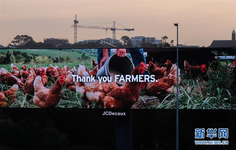 4月15日,在澳大利亞悉尼,戶外廣告牌上打出“感謝農場工作者”的字樣,感謝在疫情期間工作的人們。新華社記者白雪飛攝