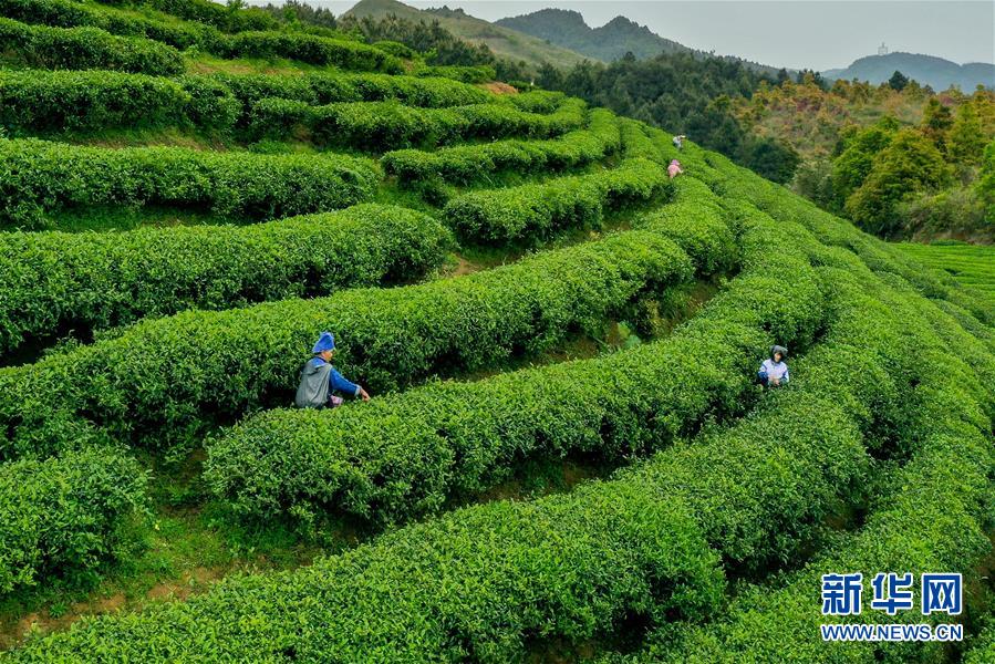 這是4月25日拍攝的“扶貧茶園”(無人機(jī)照片)。谷雨過后,在貴州省黔東南苗族侗族自治州丹寨縣“扶貧茶園”,茶農(nóng)搶抓農(nóng)時(shí)趕制春茶。丹寨縣創(chuàng)新產(chǎn)業(yè)扶貧模式,鼓勵社會公眾線上認(rèn)領(lǐng)茶園,再由茶園聘請當(dāng)?shù)刎毨魟?wù)工,為貧困戶創(chuàng)造茶園管理、采茶、制茶等就業(yè)機(jī)會,幫助貧困戶增收。今年以來,“扶貧茶園”已接受線上預(yù)訂600余畝,給當(dāng)?shù)?00余名村民提供了就業(yè)機(jī)會。新華社記者歐東衢攝