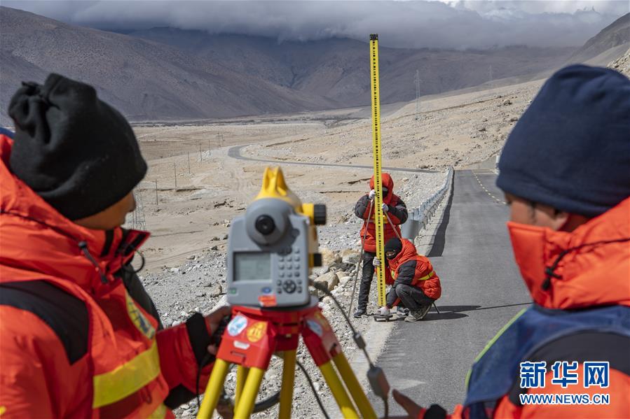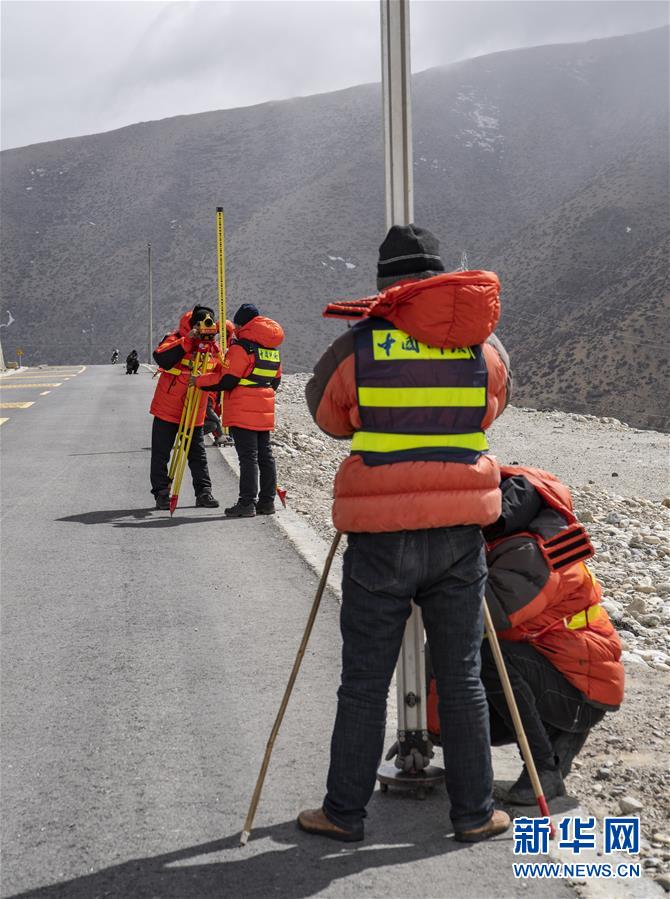 國測一大隊隊員在西藏定日縣曲當(dāng)鄉(xiāng)境內(nèi)進行水準(zhǔn)測量(4月18日攝)。水準(zhǔn)測量是一種利用提供水平視線的儀器(如水準(zhǔn)儀、水準(zhǔn)標(biāo)尺),測定地面不同點之間的高差,并以此推算高度的一種方法,是經(jīng)典大地測量的重要技術(shù)之一。在目前正在進行的2020珠峰高程測量中,部分國測一大隊隊員承擔(dān)了水準(zhǔn)測量的任務(wù)。新華社記者普布扎西攝