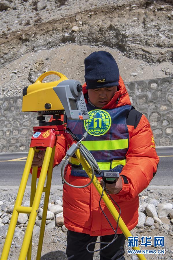 國測一大隊隊員金良在操作水準(zhǔn)儀(4月18日攝)。水準(zhǔn)測量是一種利用提供水平視線的儀器(如水準(zhǔn)儀、水準(zhǔn)標(biāo)尺),測定地面不同點之間的高差,并以此推算高度的一種方法,是經(jīng)典大地測量的重要技術(shù)之一。在目前正在進行的2020珠峰高程測量中,部分國測一大隊隊員承擔(dān)了水準(zhǔn)測量的任務(wù)。新華社記者晉美多吉攝