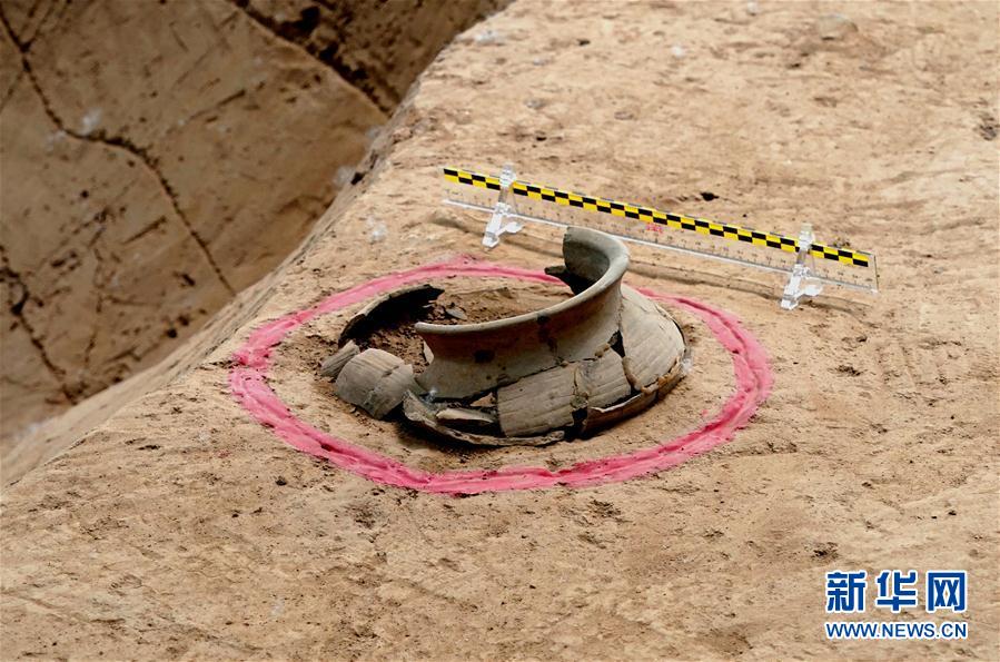 這是雙槐樹(shù)遺址出土的“曲腹缽”(4月28日攝)。新華社記者李安攝