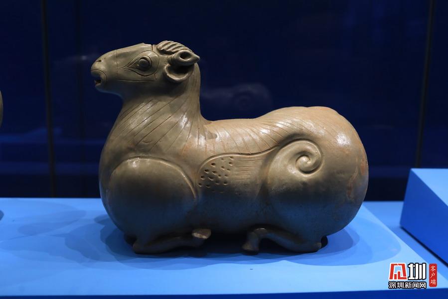 2020年5月10日報道,近十年來最大規(guī)模三國文物展“三國志——文化主題特展”,正在中華世紀壇展出。圖為三國吳,青瓷羊。