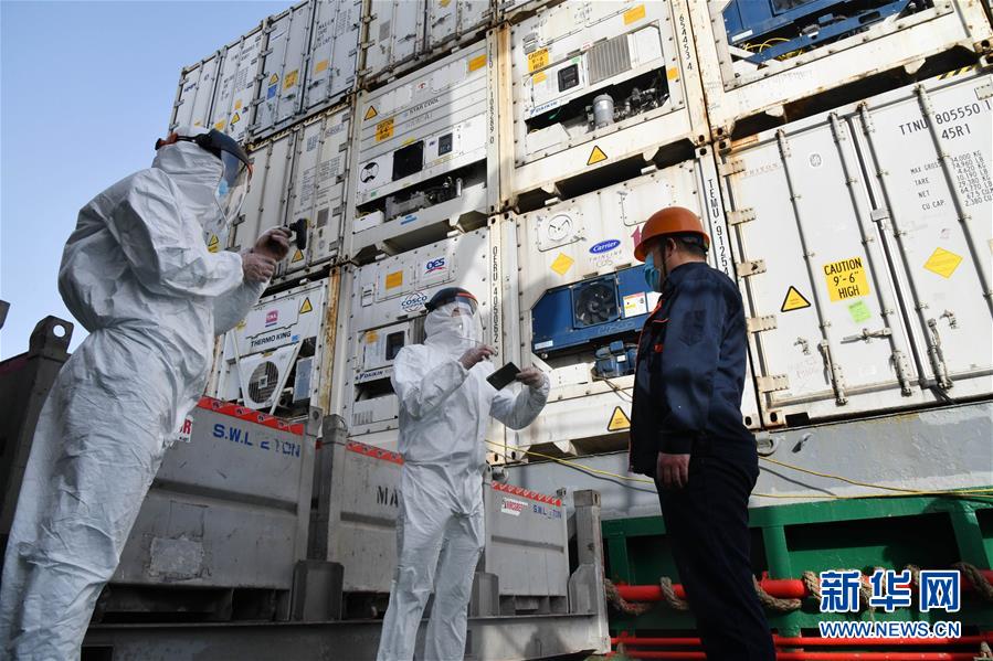 5月13日,山東威海出入境邊防檢查站民警在核對外籍船員證件。面對疫情防控要求,山東威海出入境邊防檢查站嚴(yán)密勤務(wù)組織、強(qiáng)化數(shù)據(jù)研判,加強(qiáng)口岸、碼頭的日常巡查,對國際船舶和船員強(qiáng)化監(jiān)管,全力打好疫情防輸入攻堅(jiān)戰(zhàn)。據(jù)統(tǒng)計(jì),自2月份以來,威海邊檢站共服務(wù)出入境(港)船舶400余艘次,出入境(港)人員7000多人次,為180多個(gè)集裝箱防疫物資提供通關(guān)便利。新華社記者朱崢攝