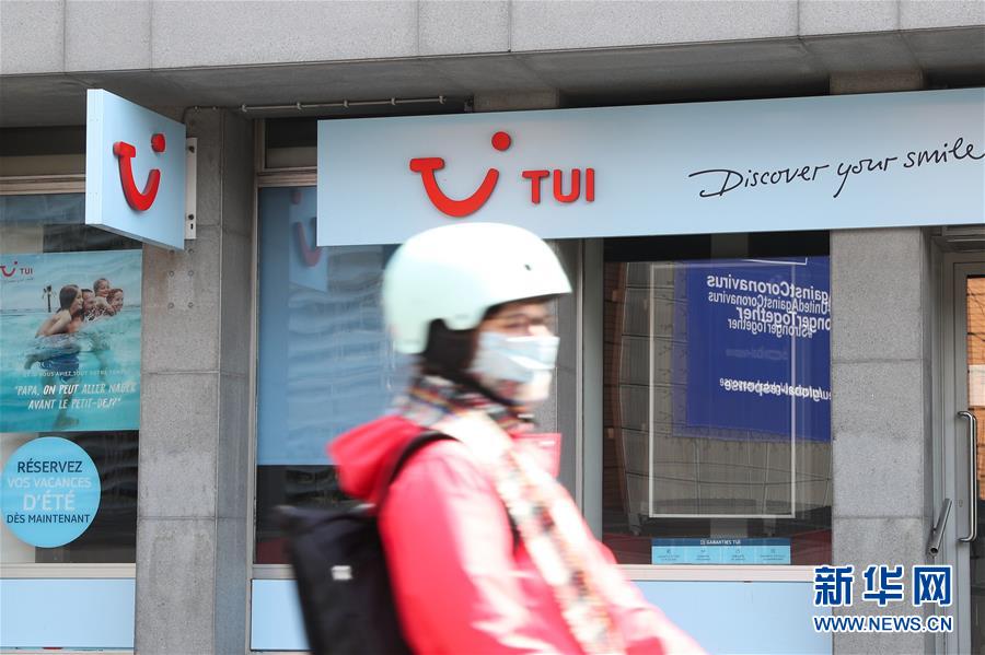 5月13日,一名女子經(jīng)過比利時布魯塞爾的一家途易集團的門店。受新冠疫情沖擊,旅游公司面臨財務壓力。歐洲最大旅游公司途易集團13日宣布準備裁員8000人以控制運營成本。途易集團總部位于德國,擁有旅行社、酒店、航空、郵輪等服務。新華社記者鄭煥松攝