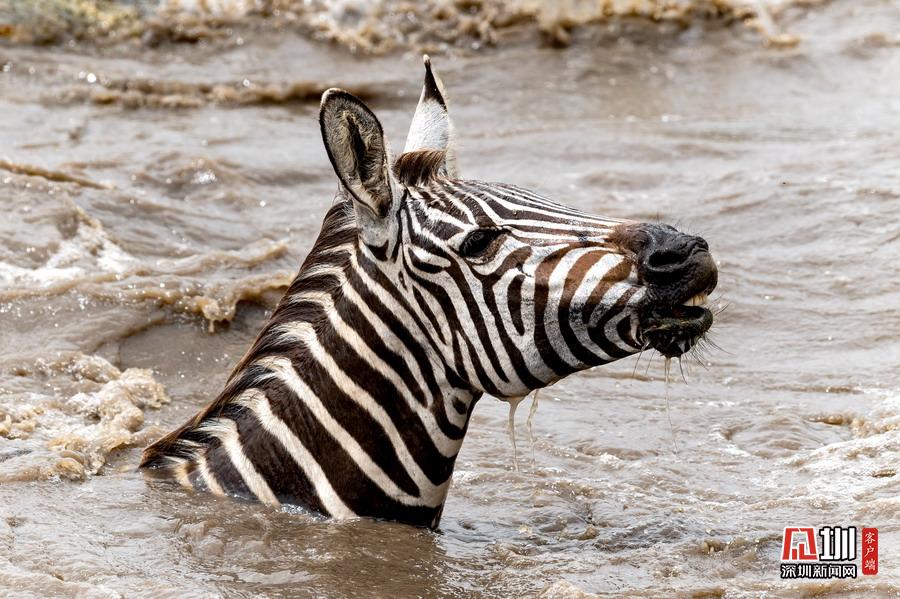 勇敢的斑馬準(zhǔn)備帶領(lǐng)其它斑馬過河。