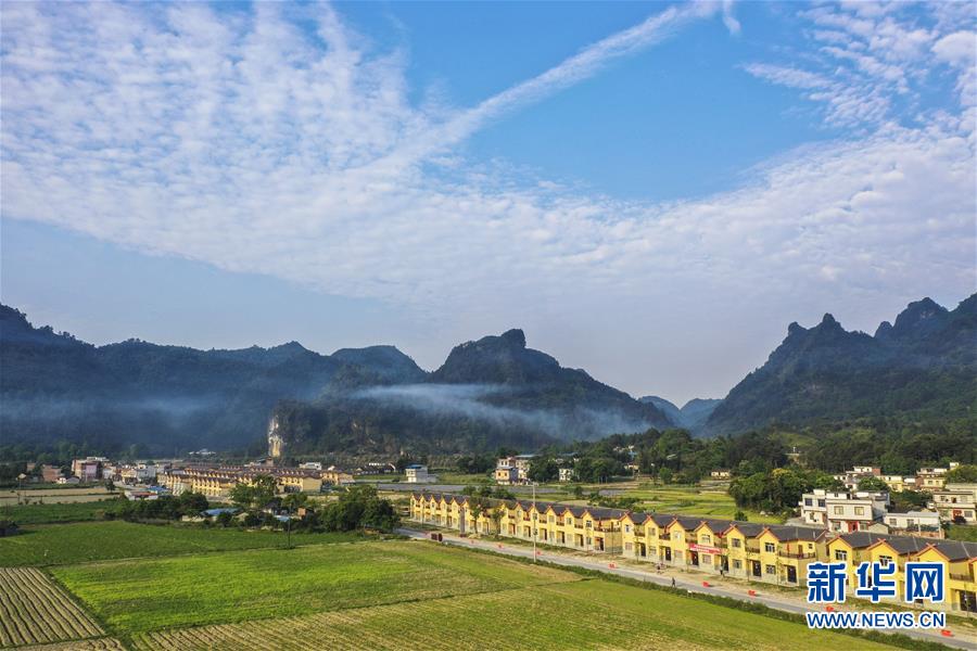 這是廣西南丹縣“千家瑤寨·萬(wàn)戶(hù)瑤鄉(xiāng)”八圩社區(qū)易地扶貧搬遷安置點(diǎn)(4月29日攝,無(wú)人機(jī)照片)。新華社記者曹祎銘攝
