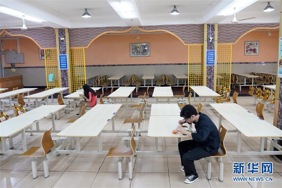 5月15日,在西南大學的一個學生食堂內(nèi),學生按照要求一人一桌吃午餐。當日,重慶西南大學迎來疫情以來首批返校大學生。據(jù)介紹,按照疫情防控的需要,重慶市高校2020年春季學期從5月11日起按照“一校一策”原則,實行錯峰錯時分批次有序開學復課。新華社記者劉潺攝