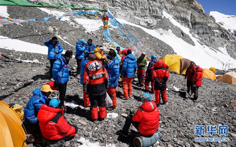 5月18日,沖頂隊員名單公布后,隊員們在進行相關準備工作。新華社特約記者扎西次仁攝