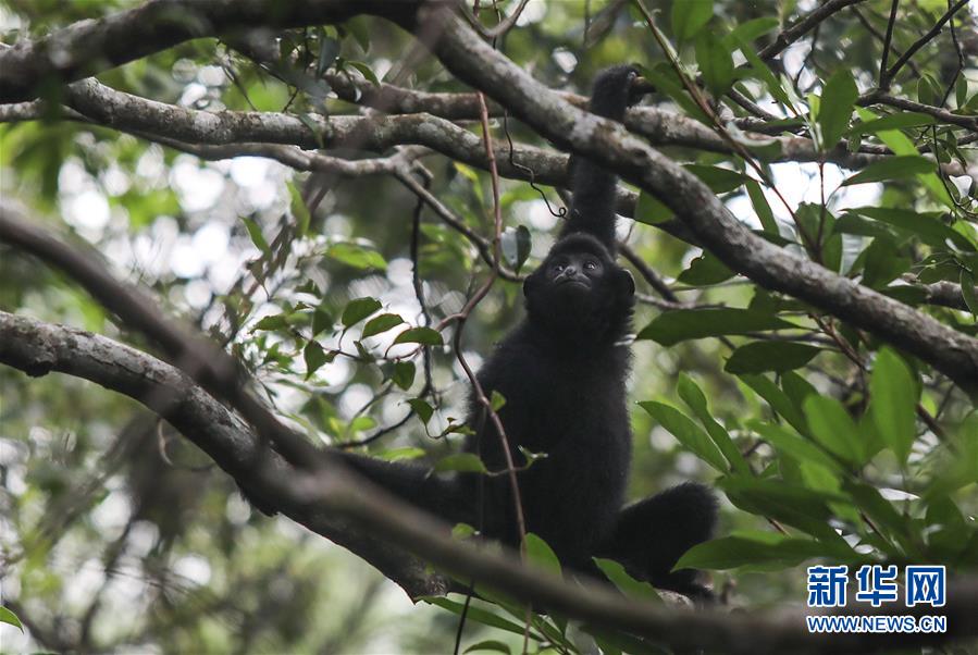 這是在海南霸王嶺自然保護(hù)區(qū)內(nèi)拍攝的海南長(zhǎng)臂猿(2019年10月25日攝)。新華社記者蒲曉旭攝