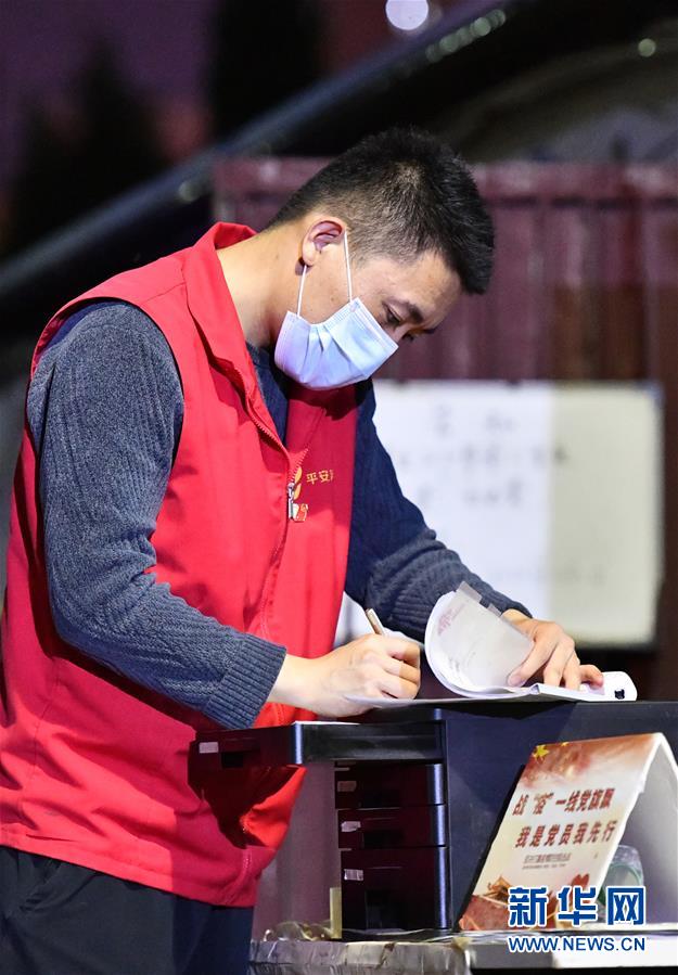 楊龍明在小區(qū)內(nèi)的值班崗填寫(xiě)登記信息(6月1日攝)。新華社記者李然攝。