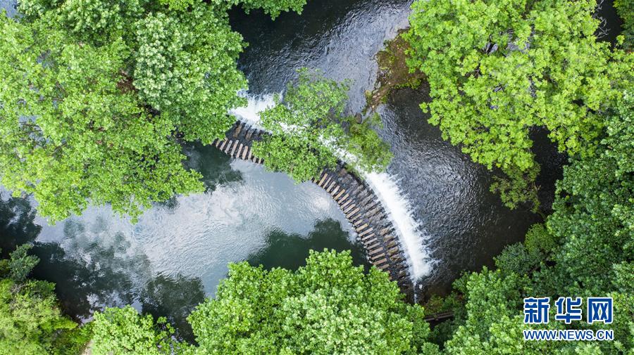 6月2日拍攝的貴陽市阿哈湖國家濕地公園(無人機照片)。初夏時節(jié),貴州省貴陽市阿哈湖國家濕地公園草木蒼翠,風景如畫,吸引人們前來休閑游玩。新華社記者陶亮攝。