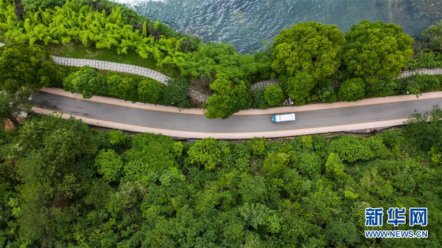 6月2日,車(chē)輛在阿哈湖國(guó)家濕地公園內(nèi)行駛(無(wú)人機(jī)照片)。初夏時(shí)節(jié),貴州省貴陽(yáng)市阿哈湖國(guó)家濕地公園草木蒼翠,風(fēng)景如畫(huà),吸引人們前來(lái)休閑游玩。新華社記者陶亮攝。