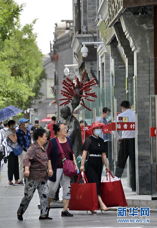6月3日,市民及游客在前門步行街購(gòu)物觀光。近日,游人和市民紛紛來(lái)到北京市的王府井、西單、前門大街等著名商業(yè)街購(gòu)物休閑,這些老商業(yè)街開(kāi)始逐步恢復(fù)昔日的繁華。新華社記者李欣攝。