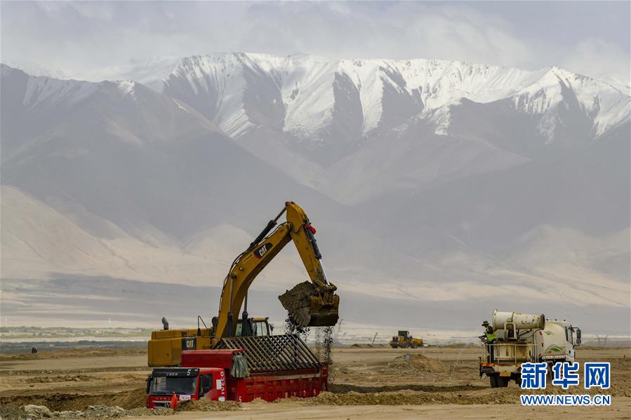新疆塔什庫爾干機(jī)場(chǎng)施工現(xiàn)場(chǎng)(6月3日攝)。新華社記者胡虎虎攝。