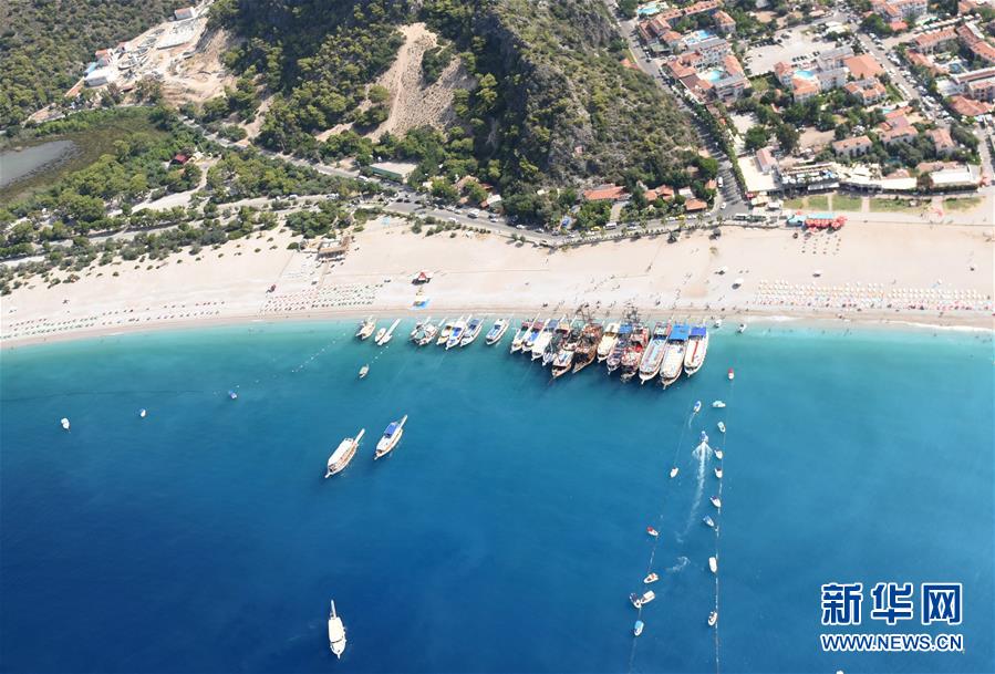 這是2018年7月23日在土耳其西南部的費(fèi)特希耶拍攝的海灘和游船。6月5日是第47個(gè)聯(lián)合國(guó)世界環(huán)境日,今年的主題為“關(guān)愛自然刻不容緩”。新華社記者賀燦鈴攝。