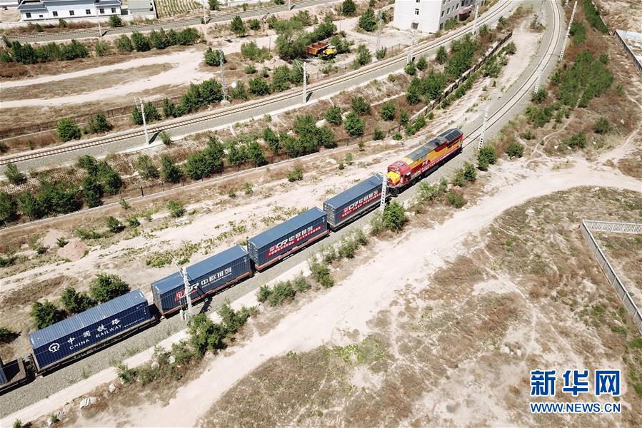 6月5日,在甘肅蘭州國際陸港,“中吉烏”公鐵聯(lián)運(yùn)國際貨運(yùn)班列準(zhǔn)備發(fā)車(無人機(jī)照片)。新華社記者范培珅攝。