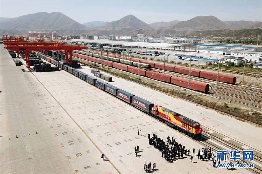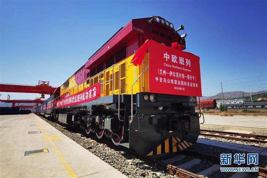 這是6月5日在甘肅蘭州國際陸港拍攝的準(zhǔn)備發(fā)車的“中吉烏”公鐵聯(lián)運(yùn)國際貨運(yùn)班列。新華社記者范培珅攝。