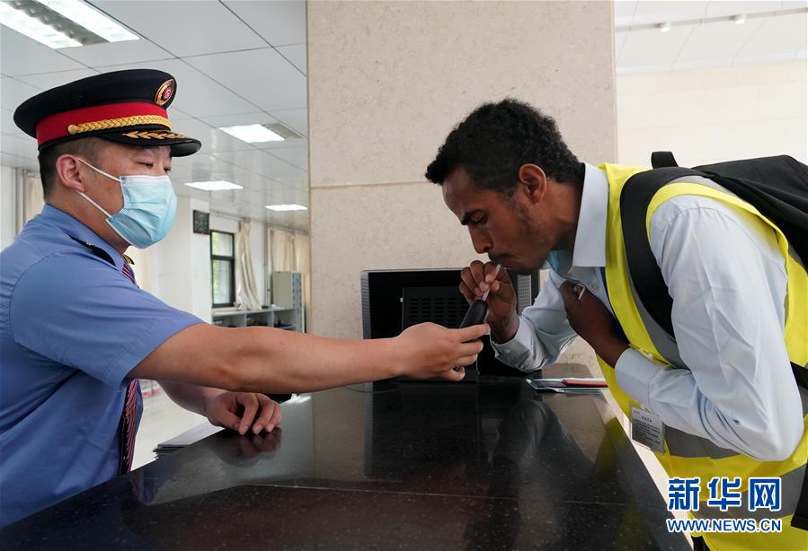 6月5日,特瑞薩在出勤前進行酒精測試。 新華社記者 李安 攝