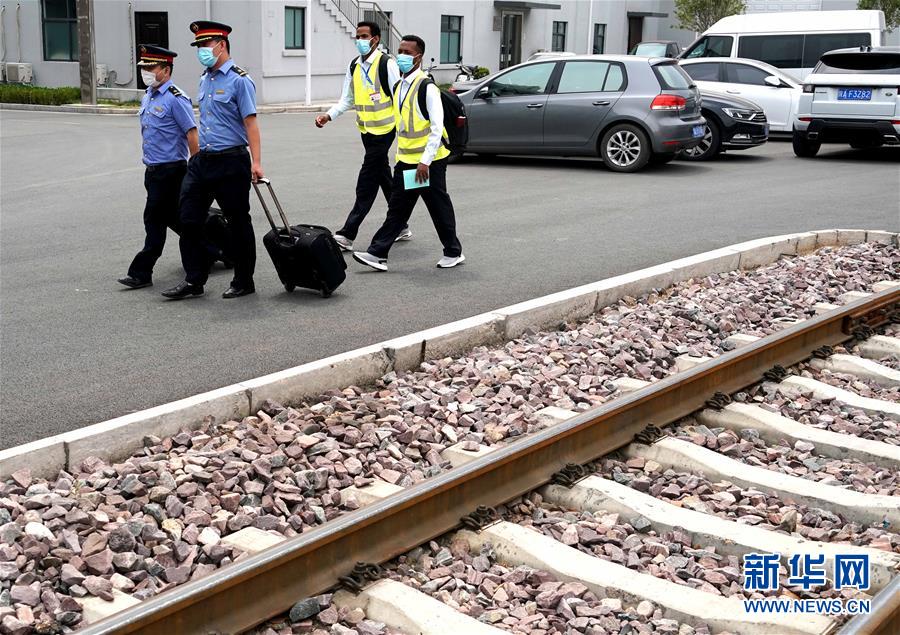 6月5日,伊迪內(nèi)卡邱(右一)和特瑞薩(右二)在帶教司機的帶領(lǐng)下去庫內(nèi)接車。 新華社記者 李安 攝
