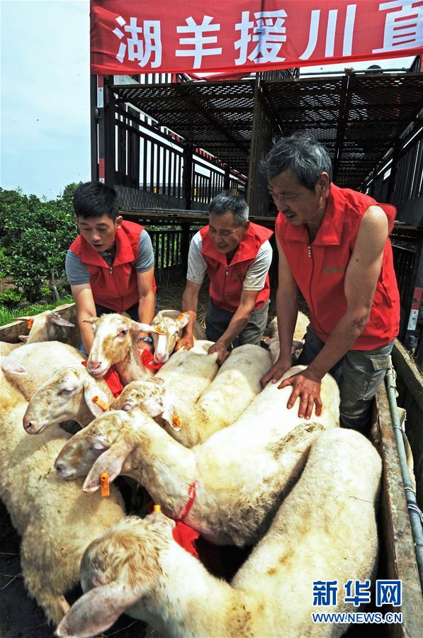 6月7日,南潯區(qū)一家湖羊養(yǎng)殖場(chǎng)的工人在裝運(yùn)湖羊。當(dāng)日,浙江省湖州市南潯區(qū)湖羊養(yǎng)殖場(chǎng)飼養(yǎng)的五千余頭湖羊啟程運(yùn)往該區(qū)對(duì)口幫扶的四川省廣安市廣安區(qū)。2018年以來,南潯區(qū)依托湖羊養(yǎng)殖產(chǎn)業(yè)優(yōu)勢(shì),積極實(shí)施“湖羊入川”和“湖羊致富”工程,向?qū)趲头龅貐^(qū)提供優(yōu)質(zhì)湖羊種羊和湖羊養(yǎng)殖技術(shù)指導(dǎo)。截至目前,南潯區(qū)已向廣安等地提供1.2萬余頭扶貧湖羊。新華社記者譚進(jìn)攝