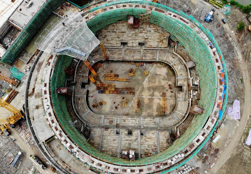 2020年6月9日,從空中俯瞰正在建設(shè)中的杭州亞運會乒乓球館。