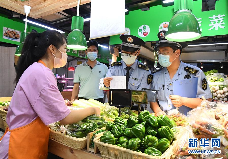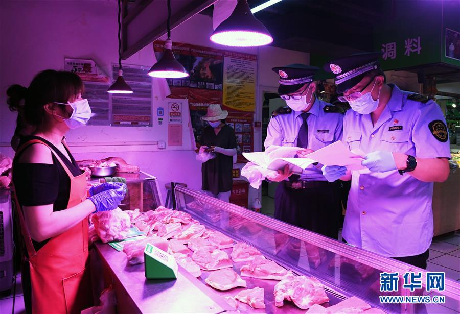 當(dāng)日,北京市市場監(jiān)督管理局和海淀區(qū)市場監(jiān)督管理局的執(zhí)法人員來到位于海淀區(qū)的增光鴻運市場和海碗居增光路店,對市場內(nèi)蔬菜鮮肉等農(nóng)產(chǎn)品的進(jìn)貨渠道、餐飲店的消毒情況進(jìn)行檢查,保障市民生活安全。