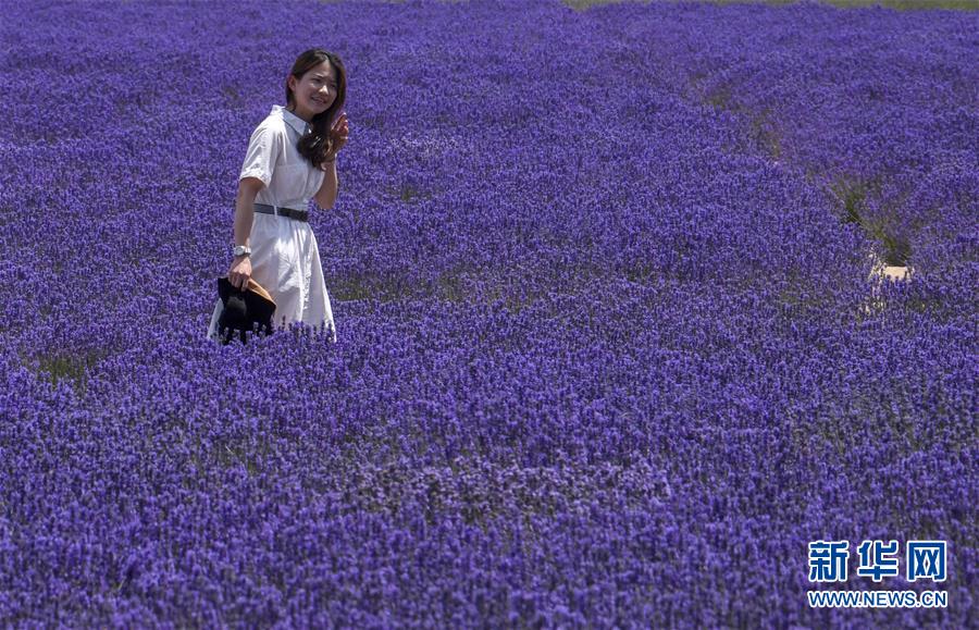 游客在霍城縣蘆草溝鎮(zhèn)四宮村的一處薰衣草花田里拍照留念(6月16日攝)。新華社記者 趙戈 攝
