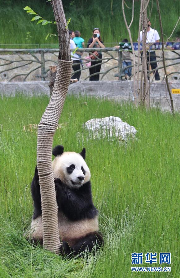 在位于四川省阿壩藏族羌族自治州的九寨溝大熊貓園拍攝的大熊貓(6月19日攝)。新華社記者劉坤攝