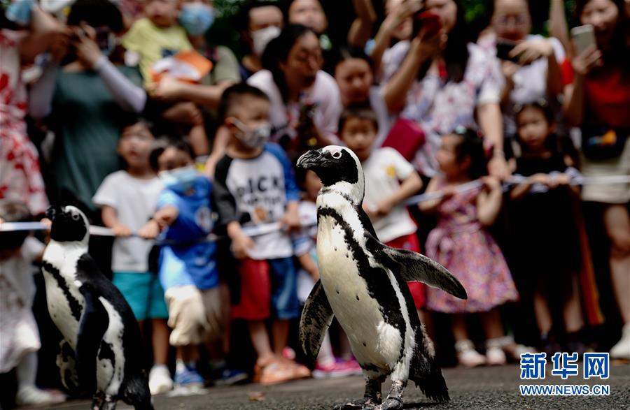 6月26日,上海動物園的企鵝在園內漫步。新華社記者 張建松 攝