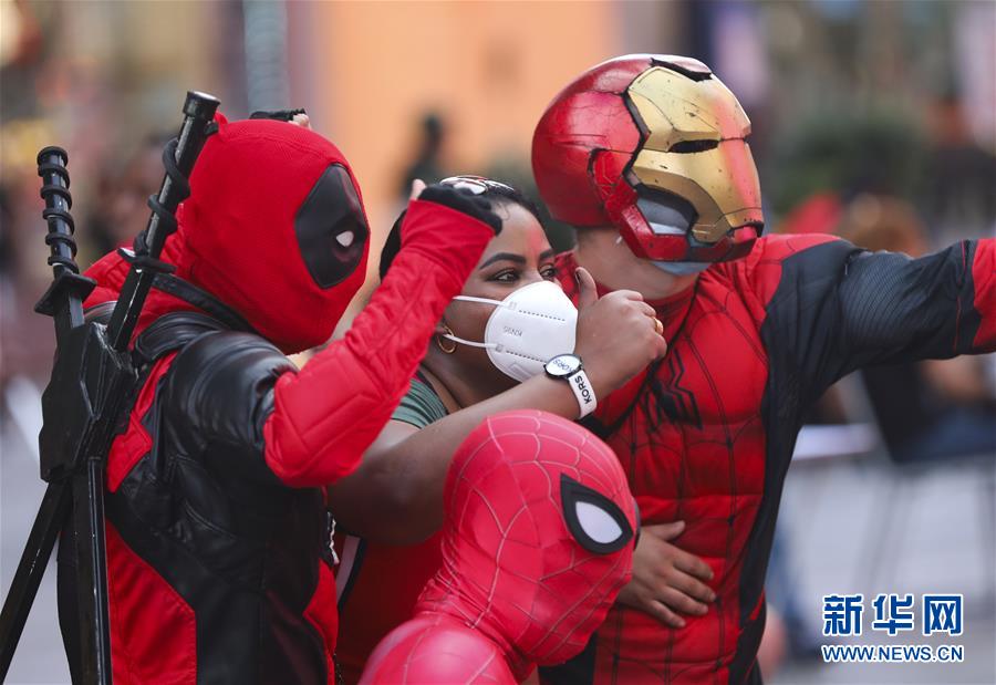 6月27日,在美國紐約時報廣場,一名游客與角色扮演者合影。美國約翰斯·霍普金斯大學27日發(fā)布的新冠疫情最新統(tǒng)計數(shù)據(jù)顯示,截至美國東部時間27日16時35分(北京時間28日4時35分),美國累計新冠確診病例2500419例,累計死亡病例125434例。新華社記者王迎攝