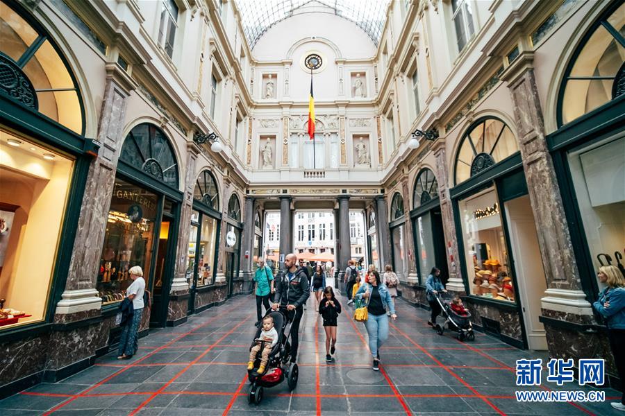 6月28日,游客在比利時(shí)布魯塞爾圣于貝爾長廊游覽。近日,隨著歐盟國家間逐步開放邊境,比利時(shí)布魯塞爾游客逐漸增多。新華社記者張鋮攝