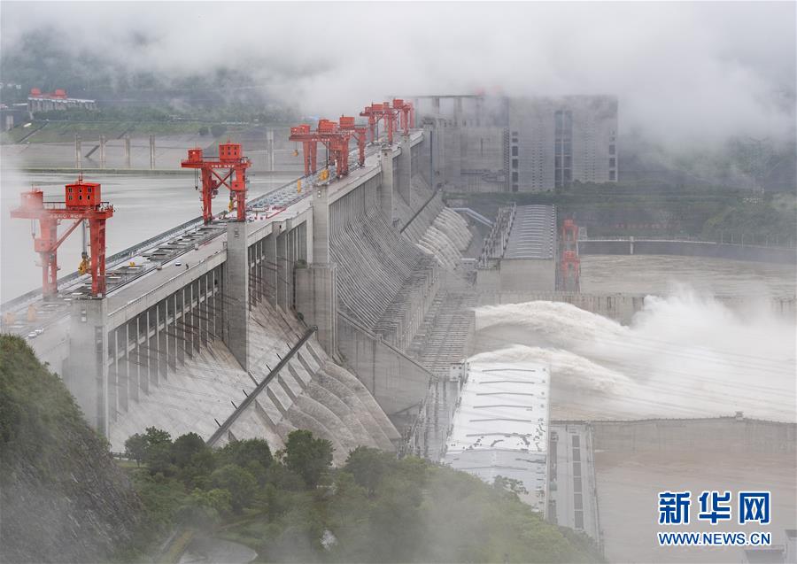 6月29日,三峽樞紐開啟泄洪孔泄洪。受長(zhǎng)江中上游強(qiáng)降雨影響,進(jìn)入三峽水庫(kù)的水量持續(xù)增多。為騰出一定庫(kù)容迎接近期可能到來的洪水,三峽樞紐于6月29日上午開啟兩個(gè)泄洪孔,加大下泄流量。這是三峽樞紐今年首次泄洪。28日14時(shí),三峽水庫(kù)入庫(kù)流量達(dá)4萬立方米/秒,是27日14時(shí)的兩倍。為應(yīng)對(duì)此輪來水,長(zhǎng)江防總要求將三峽水庫(kù)下泄流量上調(diào)至日均3.5萬立方米/秒。新華社發(fā)(黃善軍攝)